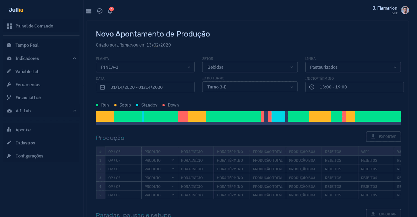 Acompanhe a construção do turno ao transferir os dados diretamente da sua planilha de apontamentos