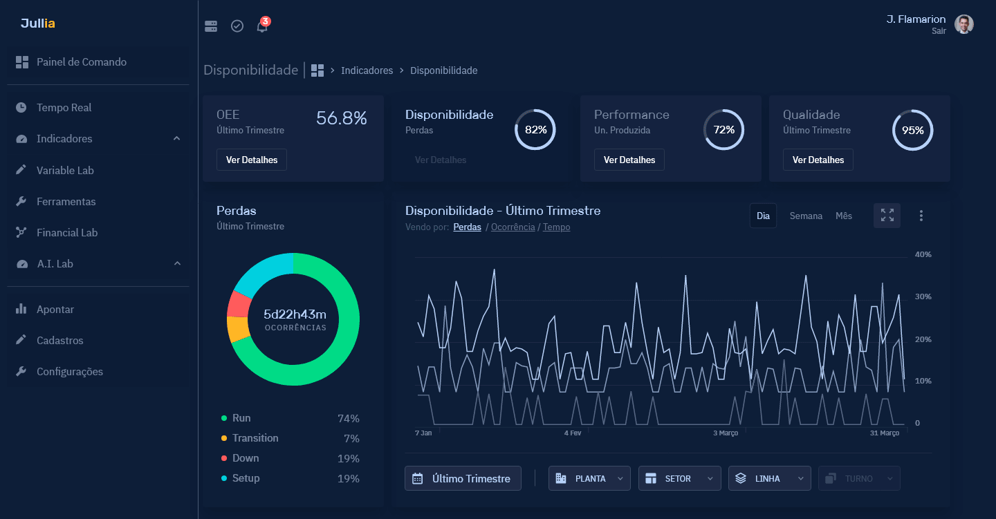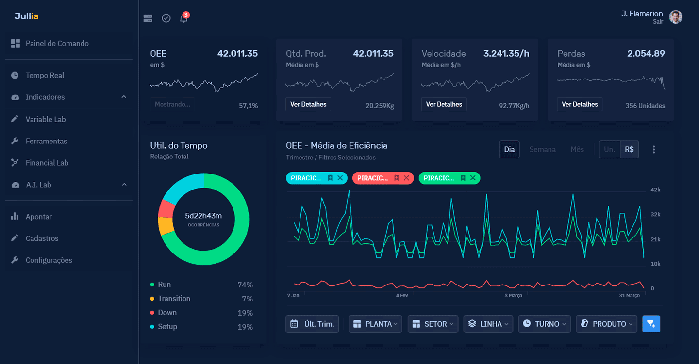 Acompanhe o desempenho de suas linhas de qualquer lugar, em tempo real.